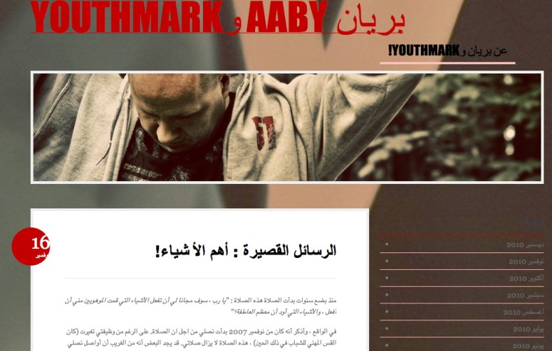 Using WordPress gives me access to stats and such that I find interesting. For instance, I can see the search terms people have used to somehow come across my blog; there’s always some fun ones and they probably end up in their search results based on the titles of some of my posts. However, in the info section earlier this week I came across my own blog in Arabic! Check it out and then pray about being the person who launches our Middle East Youthmark Offices!: